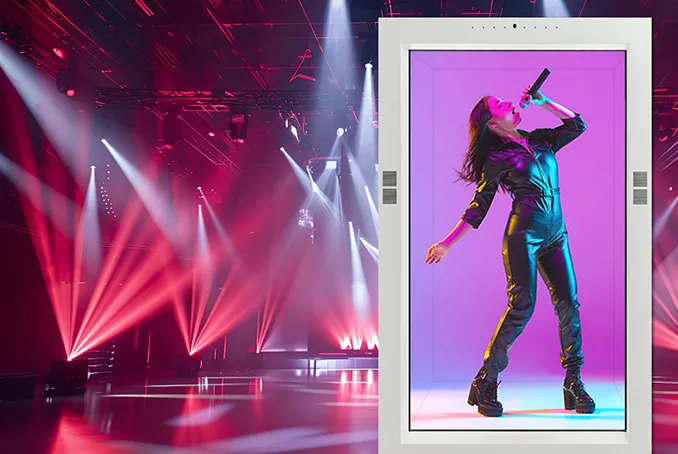 The product has 55/65/75/86/98 inch options and is suitable for mall advertising, airports, concerts, and AI live streaming. Over 100 companies are already part of our communication paradigm shift.