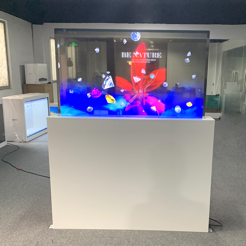 The pop-up OLED transparent screen utilizes self-emissive OLED technology, allowing independent control of the brightness and darkness of each pixel,